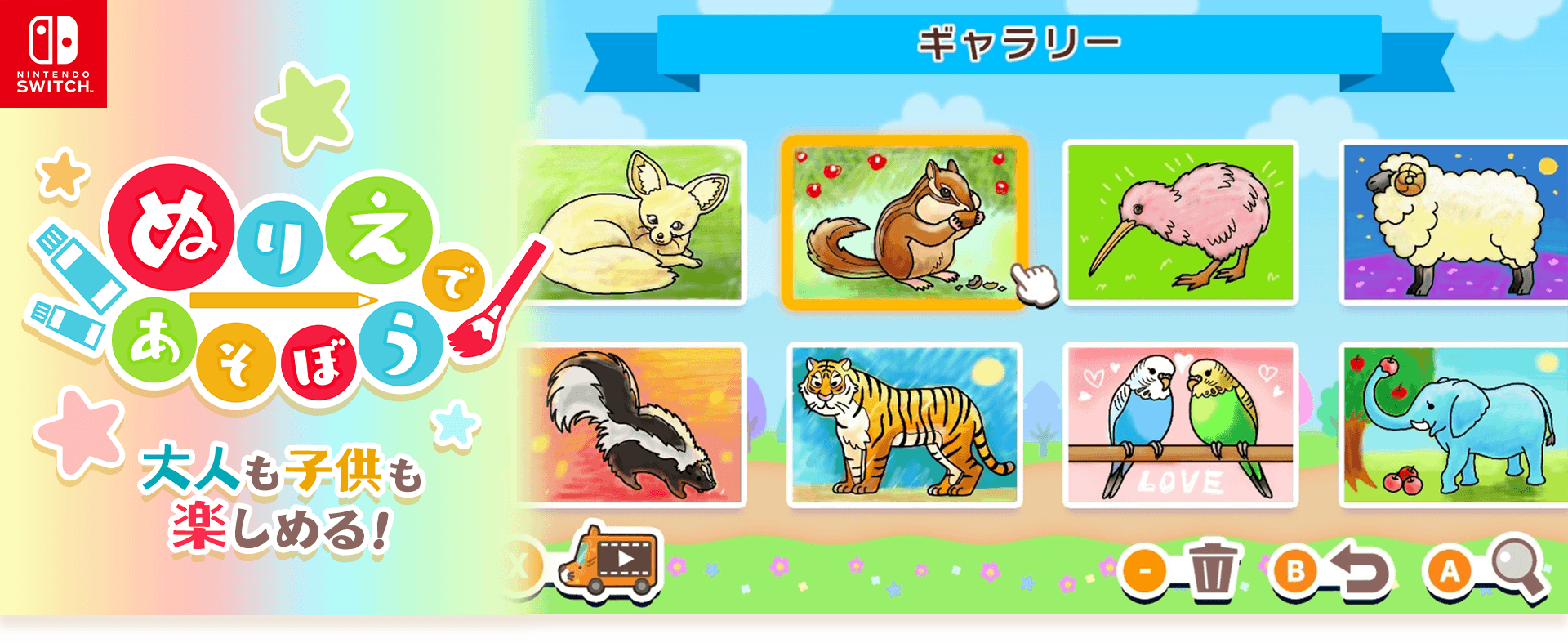 Nintendo Switchダウンロード販売「ぬりえであそぼう」シリーズの広報アカウントです🖌🌟